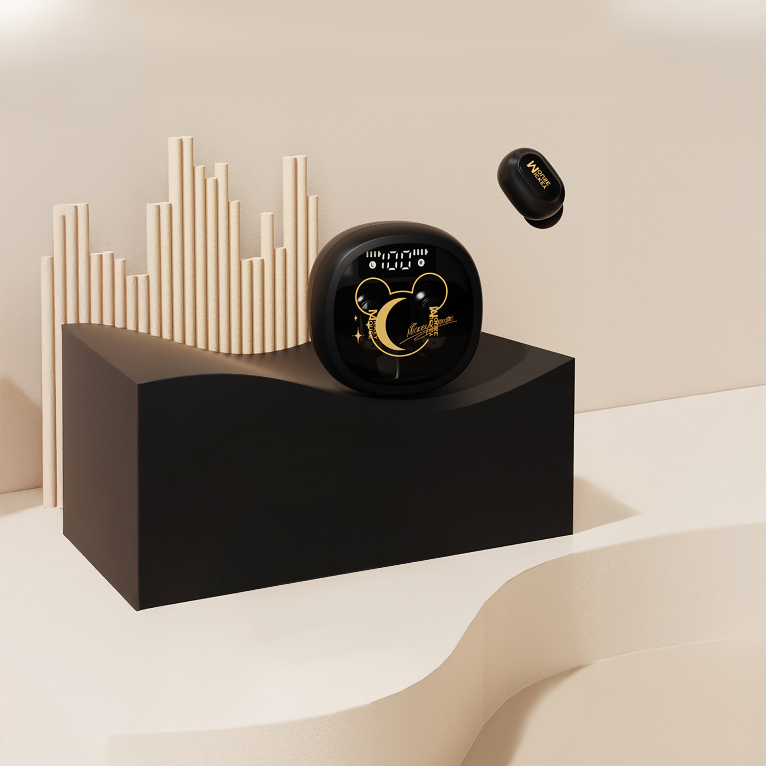 - Дизайн, вдохновленный персонажами Дисней: чёрные наушники с изображением образа культового Микки Мауса. Официально лицензированный продукт.
