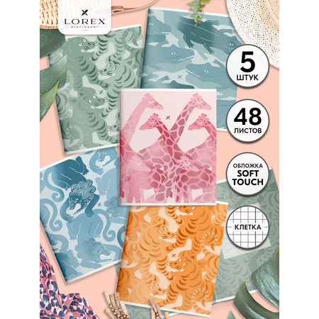 Набор тетрадей 48 листов в клетку LOREX JUNGLE CREATURES 5 шт