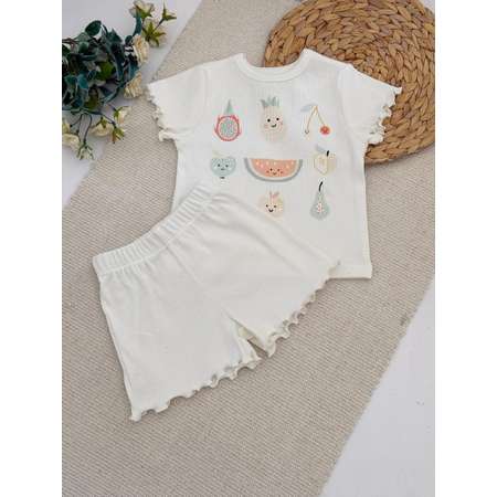 Элегантный комплект для маленькой принцессы. Костюмчик включает шортики и футболку, идеально подходит для игр и отдыха. Изготовлен из мягкого трикотажа, обеспечивающего комфорт в течение всего дня. Дышащий хлопок дарит ощущение легкости даже в жаркую погоду.