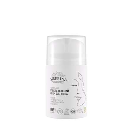 Хотите избавиться от веснушек, пигментных пятен и постакне? На помощь придет отбеливающая серия косметики от SIBERINA - она преобразит вашу кожу, сделает ее свежей, чистой, молодой и сияющей. Натуральный отбеливающий крем для лица создан для ухода за кожей в ночное время, когда клетки активно восстанавливаются и готовы максимально усваивать полезные вещества. Пока вы спите, он работает: увлажняет, смягчает и осветляет кожу, делая пигментированные области менее заметными и улучшая цвет лица в целом. При регулярном применении крем не только уменьшает пигментацию, но и предупреждает ее повторное появление.