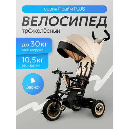 Велосипед 3-х колес. с ручкой ПРАЙМ PLUS (колеса резин.10"/8"поворот.сиденье) бежевый (арт. ВЛ-5096)