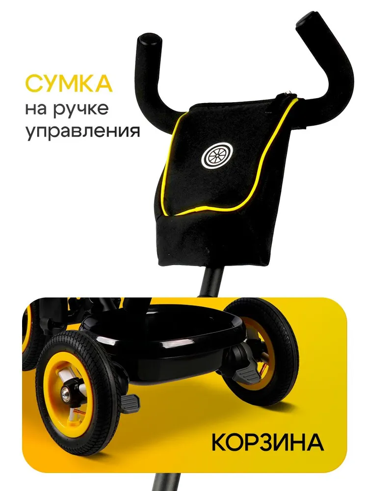 Велосипед трёхколёсный с ручкой ПРАЙМ PLUS (колёса надув.,10"/8", муз. модуль) желтый (арт. ВЛ-5499)