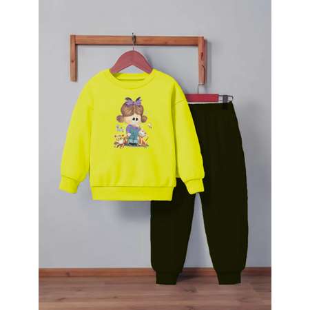 Спортивный костюм для девочки футер 3-х нитка с начесом, желтого цвета. Ткань в данном костюме плотная идеально подходит на осенне-зимний сезон и весну! В комплект входит толстовка и брюки джоггеры свободного кроя на манжете. Полотно состоит из хлопка с добавлением полиэстера, благодаря этому костюм для девочки очень удобный и эластичный. Худи имеет принт, который выполнен качественными красками. Благодаря конструкции костюм, не сковывает движения, ваш ребенок будет в максимальном комфорте .Костюм без начеса отлично. Сделано в России.