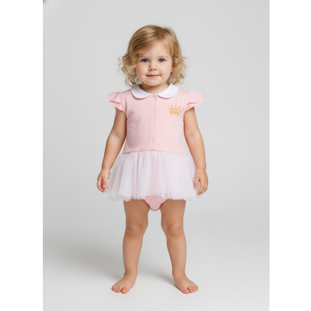 Шикарный боди с воротничком и юбочкой, подойдет как для повседневной носки, так и для первой фотосессии . Выполнен из ткани интерлок 100% хлопок. Боди дополняет нежная юбочка из фатина , отложной воротничок и принт "Золотая корона". Платье-боди прекрасно подойдет для праздничных мероприятий и фотосессий.