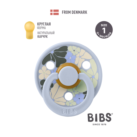 Пустышка латексная BIBS Studio Colour - Flower Child - Dusty Blue, 0+ мес.