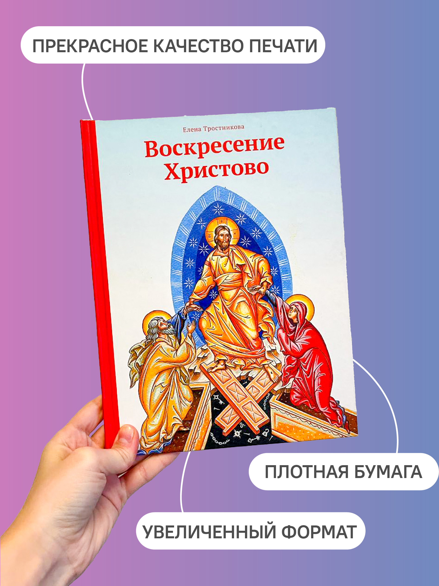 Книга о великом празднике Пасхи в серии «Детство с Богом» предназначена для чтения взрослыми детям от двух лет. Рассказ о Воскресении Христовом построен близко к евангельскому повествованию и простым ясным языком с поддержкой ярких и живых иллюстраций передает маленькому слушателю максимум того, что он в состоянии воспринять.