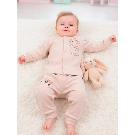 Комплект для малыша кофточка для новорожденного на кнопках и ползунки Совенок Дона. Костюм нательный для новорожденного. Материал: футер с начесом- 100% хлопок.
