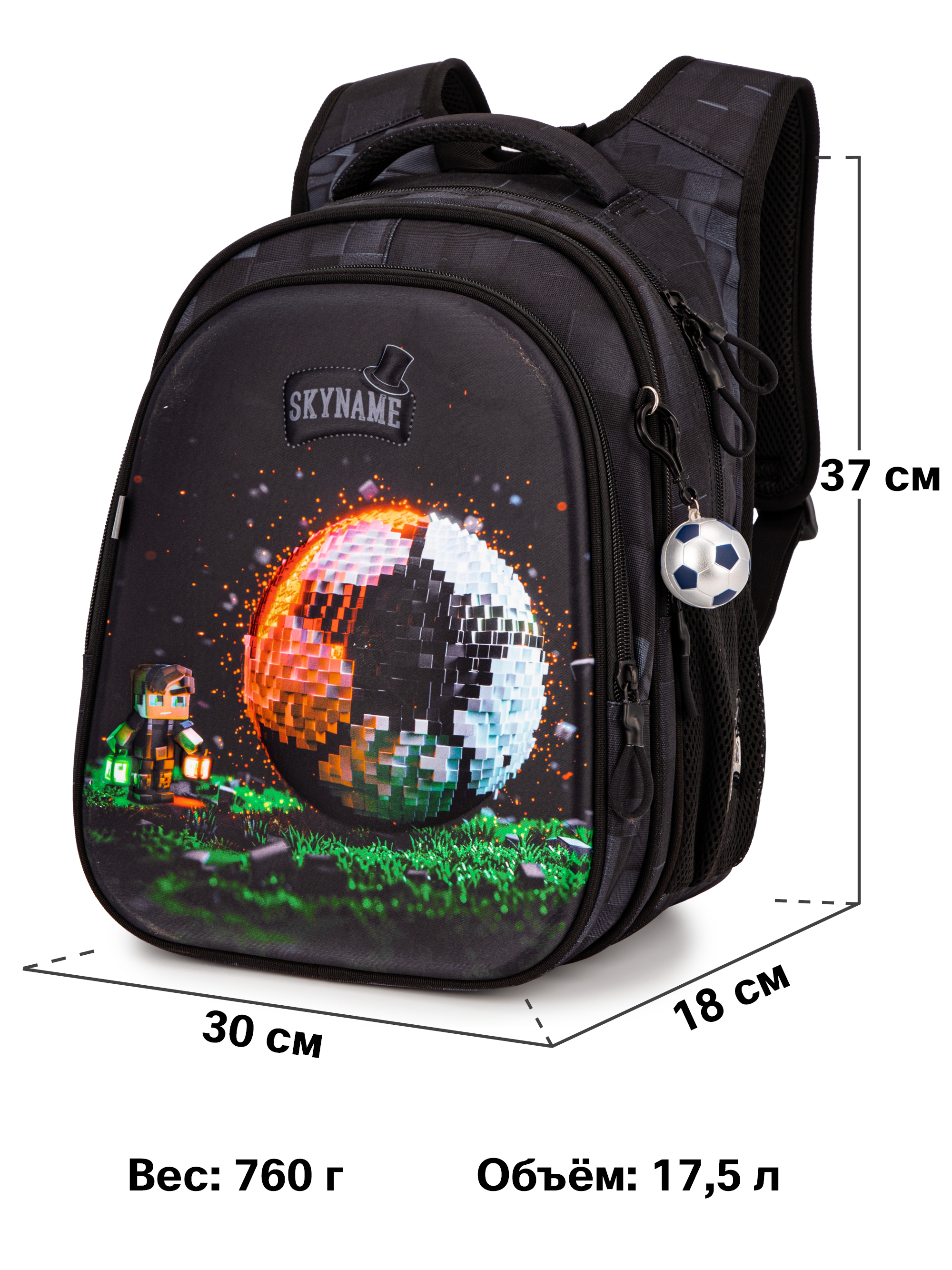 Рюкзак школьный для мальчика объемом 17 л SkyName (СкайНейм) весом 760 г с брелоком мячик в подарок для детей младших классов. Анатомическая спинка портфеля обеспечит поддержку во время ношения. Эргономичная форма поможет избежать давления на позвоночник. Благодаря мягким дышащим элементам ранец для начальной школы будет комфортно носить на протяжении всего дня. При максимальной загрузке не меняет форму. S-образные лямки с регулируемым нагрудным ремнем и застежкой фастекс обеспечивают комфорт. Ремни плотные и дополнены мягкими вставками, а их длину можно регулировать. Портфель выполнен из высококачественного и водоотталкивающего материала- это защищает содержимое от влаги. Рюкзак для школы оснащен жестким дном и пластиковыми ножками, что гарантирует его устойчивость. Молния заднего отделения открывается с двух сторон для удобства доступа.