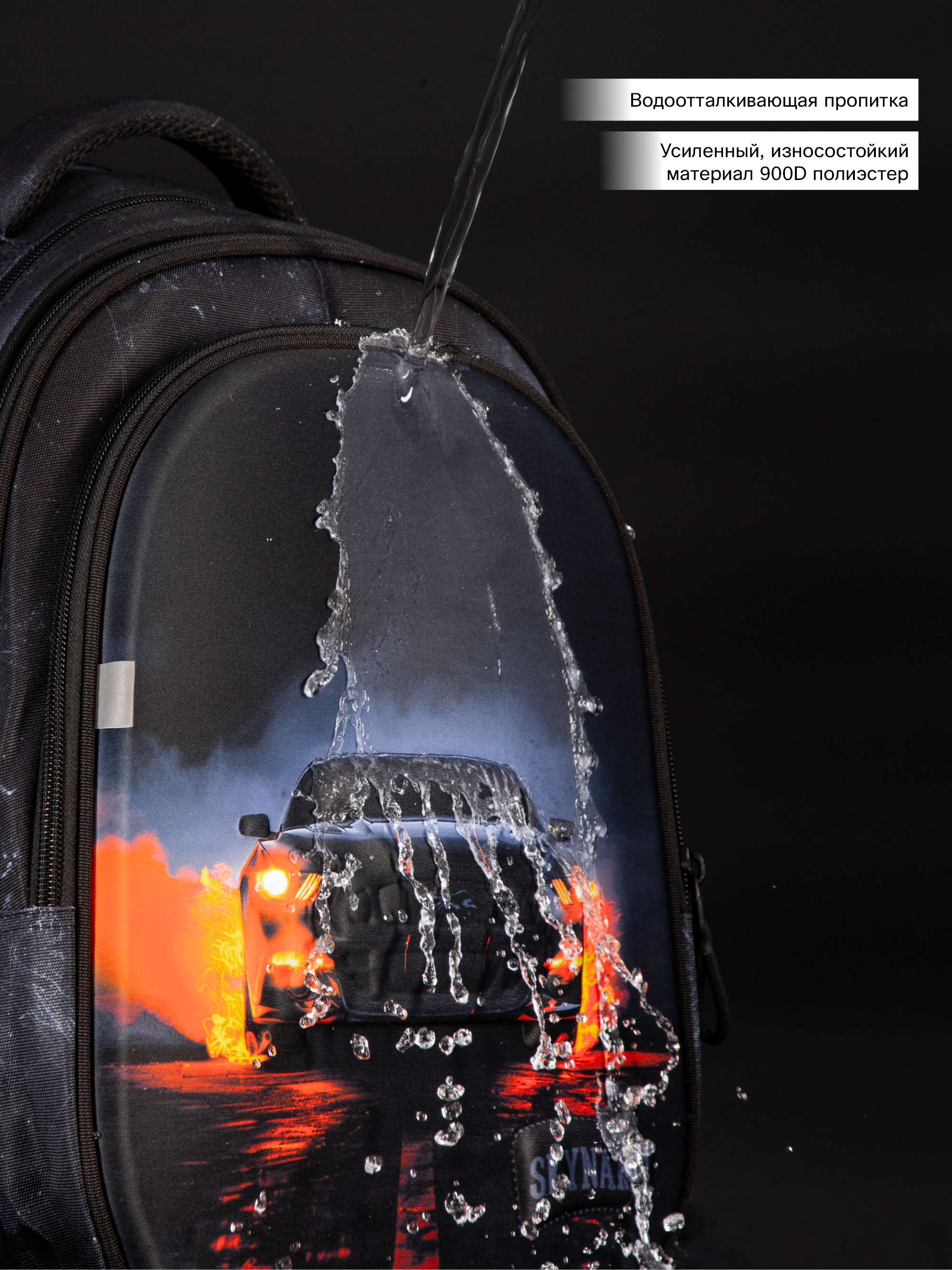 - Отсек у спины для плоских папок формата А4, ноутбука и больших учебников