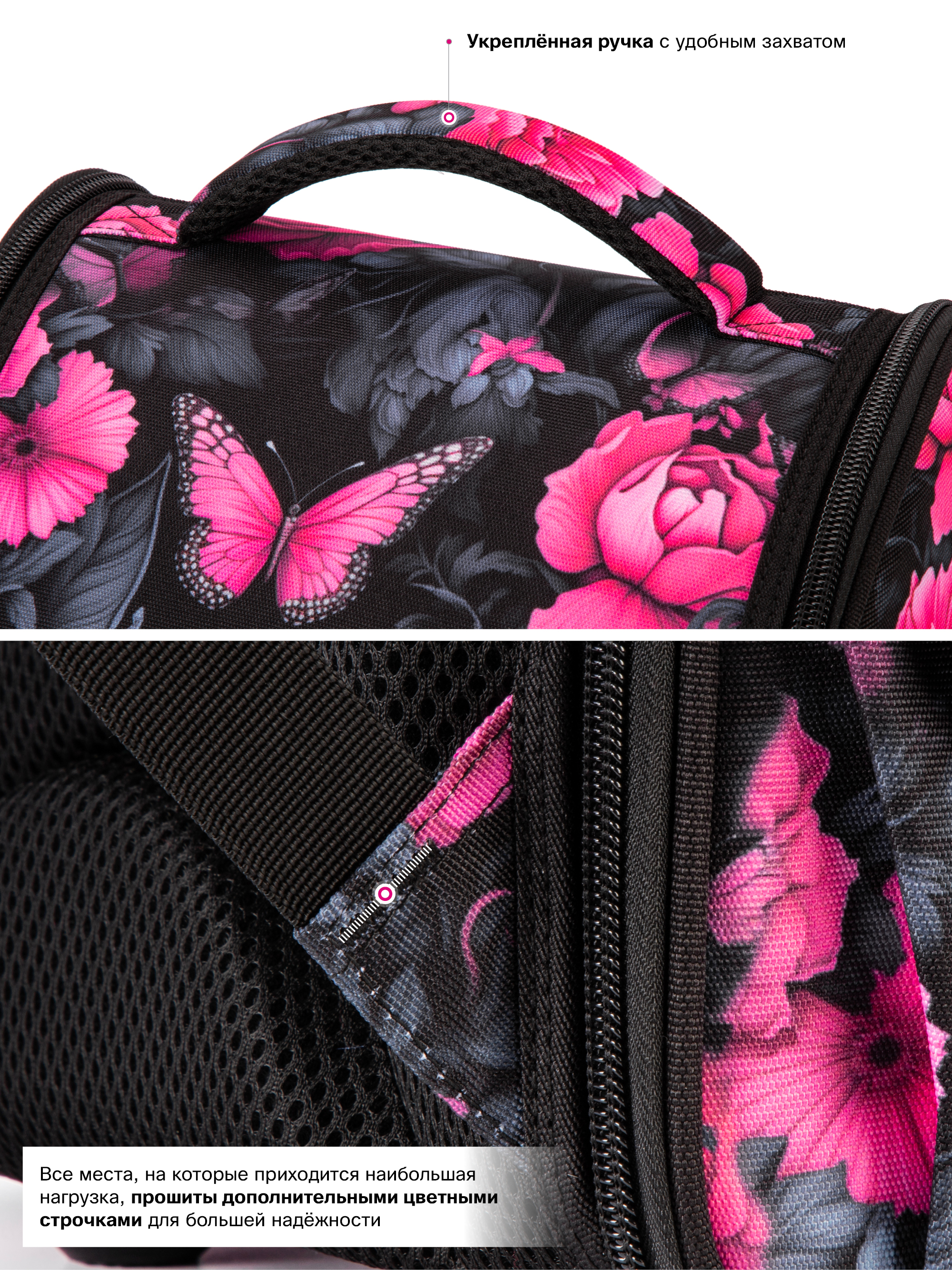Ранец школьный 12 л для девочки первоклассника в начальную школу с анатомической спинкой, + брелок в подарок, SkyName