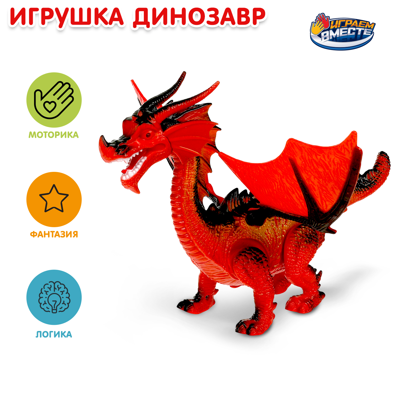 Игра с динозавром ТМ «Играем вместе» расширяет кругозор и развивает: