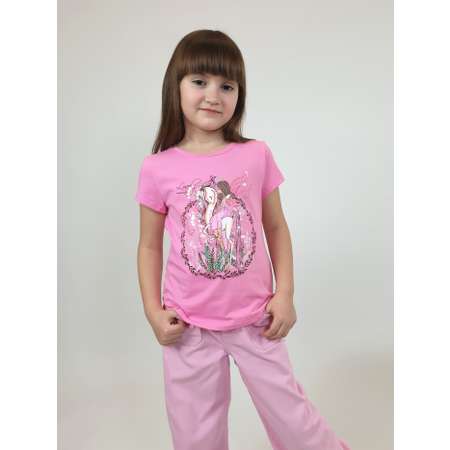 Эта футболка для девочки выполнена из кулирного полотна, в составе которого 95% хлопка и 5% лайкры. Модель полуприлегающего силуэта с коротким втачным рукавом обязательно понравится юным модницам.Ткань изделия мягкая, дышащая и приятная к телу, что делает футболку идеальным выбором для жаркой погоды.