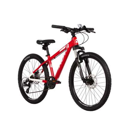 Novatrack Extreme с семью скоростями – это классический пример универсального подросткового маунтинбайка с колесами 24 дюйма. Выпускается в двух модификациях: с мощными и цепкими дисковыми тормозами модель Extreme 7.D и с неприхотливыми и безотказными ободными тормозами модель Extreme 7.V. Конструкция байков выглядят сбалансированными: прочная, легкая и эргономичная алюминиевая рама с пружинно-эластомерной амортизационной вилкой с ходом 40 мм, которая обеспечит контроль над велосипедом и комфорт во время езды по грунтовым дорогам; продолжает эту линию 7-ми скоростная трансмиссия скомпонованная на проверенных комплектующих Shimano линейки Tourney – это неприхотливое и простое железо, которое отлично себя зарекомендовало у миллионов пользователей в самых различных условиях эксплуатации. Удобная комплектация велосипеда отвечает за простое и понятное управление - подобранные под геометрию руль и вынос делают байк еще более комфортным. Прибавим к этому отзывчивые тормоза, и вот он - семискоростной подростковый байк Novatrack Extreme готовый на все приключения в компании маленького райдера. Самое главное, что в конструкции велосипеда нет сложных или слишком требовательных элементов, что не осложнит эксплуатацию и обслуживание байка в дальнейшем. Велосипед выпускается в красно-белом или сине-белом дизайне, с ростовками рам 11 и 13 дюймов.