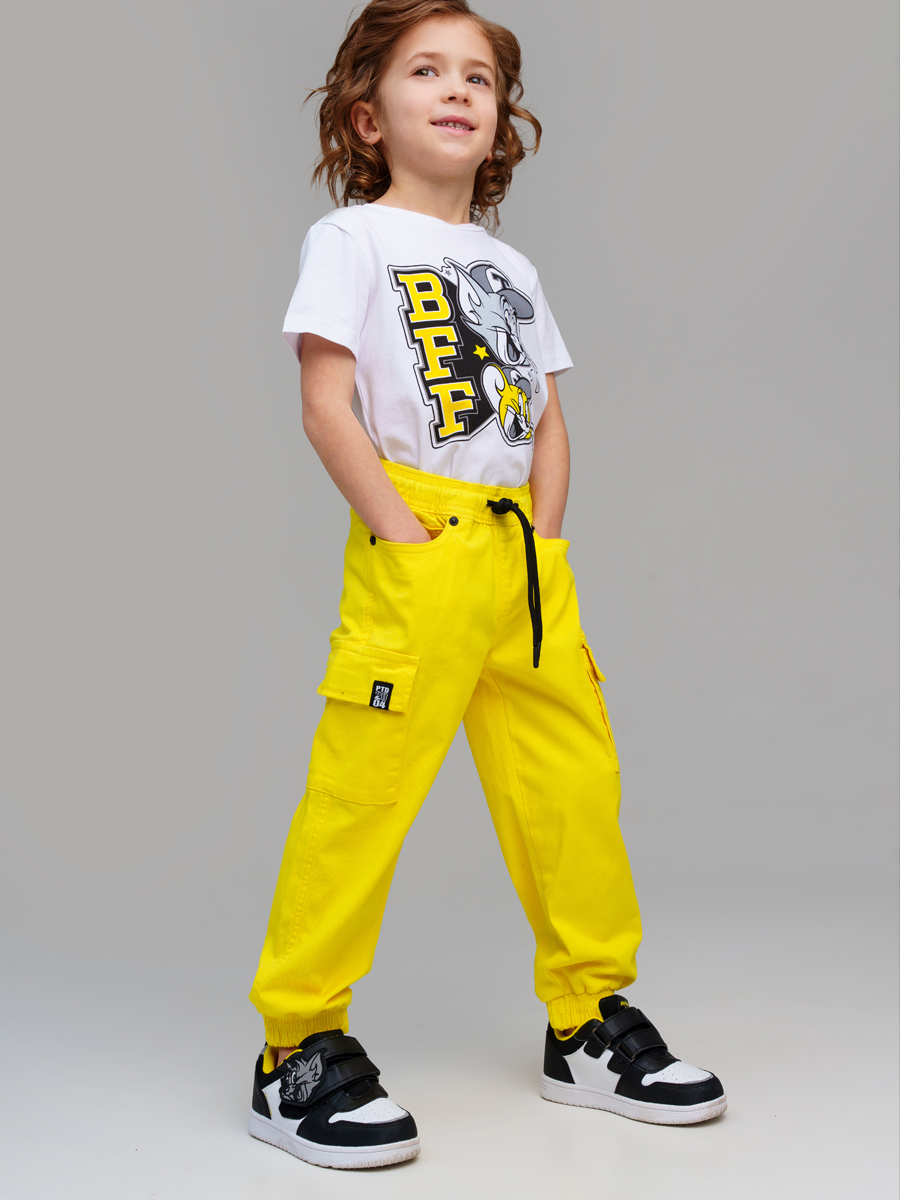 Брюки детские для мальчика. JOGGER FIT - спортивный крой. Средняя посадка. Штаны на резинке со шнурком. Накладные карго-карманы. Модель выполнена из качественного и плотного текстиля. Модель из капсульной коллекции PLAY & JOY. Соберите полный образ в едином стиле! Детские брюки, созданные специально для активных детей! Наши удобные брюки для активных детей обеспечивают максимальный комфорт и свободу движений, что идеально подходит как для игр во дворе, так и для школьных занятий. Модели на резинке для детей легко надеваются и не сковывают движения, а брюки с регулируемым поясом позволяют подстроить размер под индивидуальные предпочтения. Выбирайте из разнообразия дизайнерских брюк с веселыми принтами, которые обязательно порадуют ваших малышей! Для теплых дней отлично подойдут летние брюки для детей, а для спортивных занятий мы предлагаем специализированные модели, обеспечивающие комфорт во время активных тренировок. Наши универсальные брюки для повседневной носки подходят для любой ситуации – будь то прогулка с друзьями или семейный выход. Позвольте вашему ребенку выглядеть стильно и чувствовать себя комфортно в любой обстановке! Мы предлагаем брюки , которые станут отличным выбором в подарок или идеальным вариантом для праздника, подходящим для любого случая.
