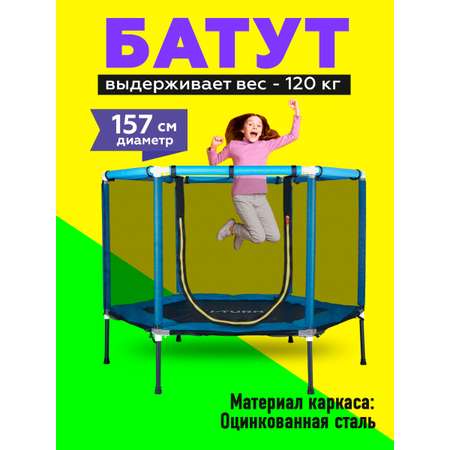 Батут U-TURN Детский / До 120 кг / Ø 157см / С сеткой / Голубой