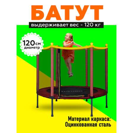 Батут U-TURN Детский / До 120 кг / Ø 120 см / С сеткой / Красный
