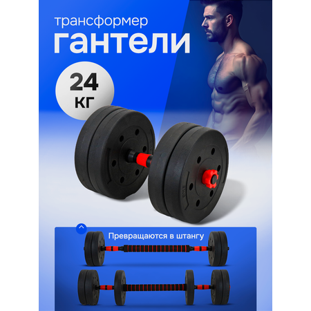 Гантели U-TURN 2в1 24кг Гантели+штанга в комплекте 8 дисков