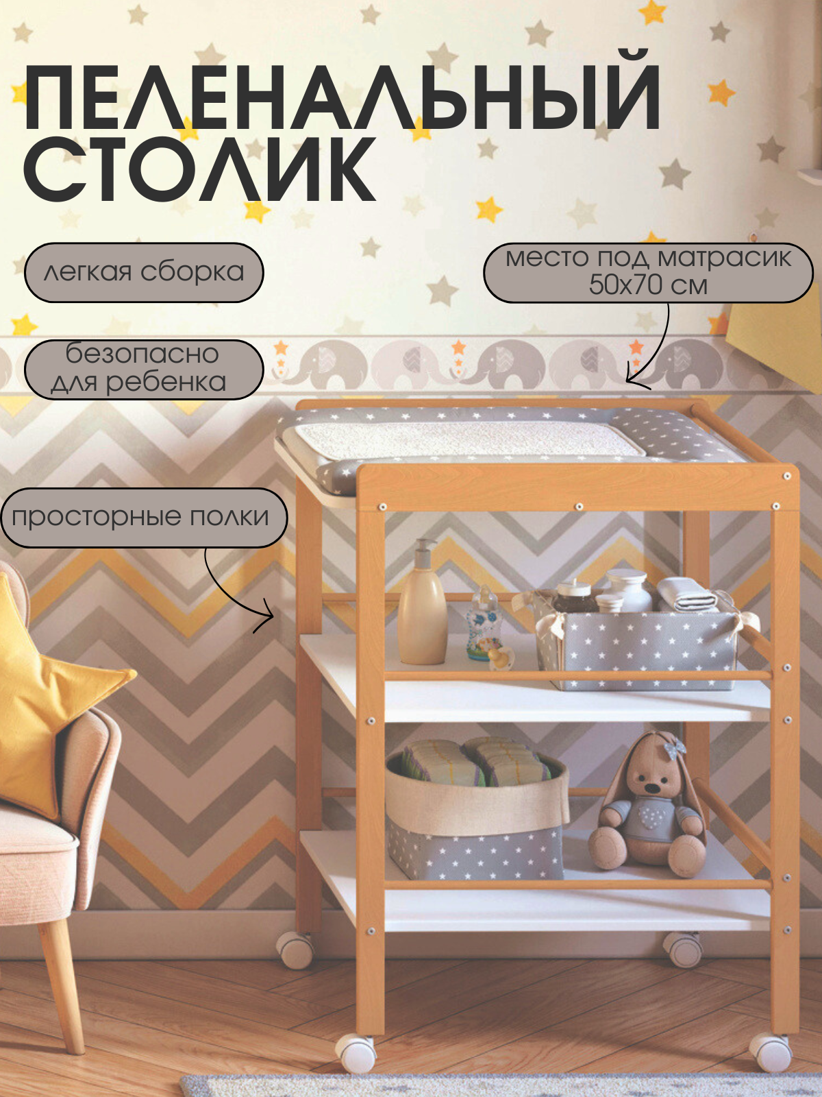 Имеет бортики с закругленными углами для обеспечения безопасности ребенка во время нахождения на пеленальном столике.