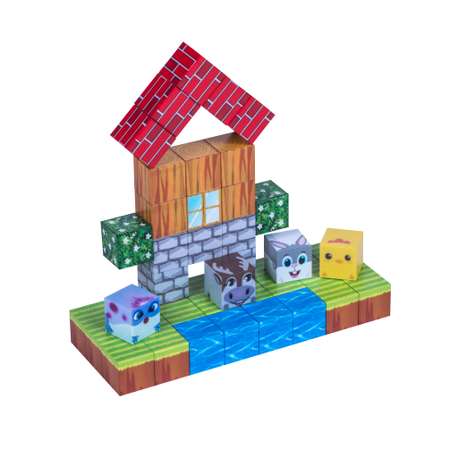- Конструктор содержит 48 элементов (46 магнитных блоков, 1 фигурка человечка и инструкция).