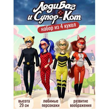 Набор из 4х кукол Леди Баг и Андриан в образе Черного кота. Высота кукол - 30 см. Леди Баг и Супер кот Замечательная коллекция кукол приведет в восторг любого поклонника одноименного мультфильма. Персонажи мультика Супер Кот и Леди Баг вместе смогут победить любого злодея. Куклы одеты в свои фирменные комбинезоны и маски, каждая своего цвета. Куклы из мультсериала детализированы и подвижны. Куклы изготовлены из безопасного пластика. Погружайся в атмосферу мультсериала. Леди Баг и Супер Кот эта история о простой школьнице Маринетт, которая может превращаться в храбрую супергероиню и спасать город от злейших врагов. Одной ей было бы трудно справиться со всеми поставленными задачами. Девушке во всём помогает Супер Кот, за маской которого прячется скромный паренёк Адриан. Фантазируй и играй! все конечности кукол подвижны: ноги сгибаются в коленях, руки вращаются в плечах и запястьях. Высота кукол 30 см.