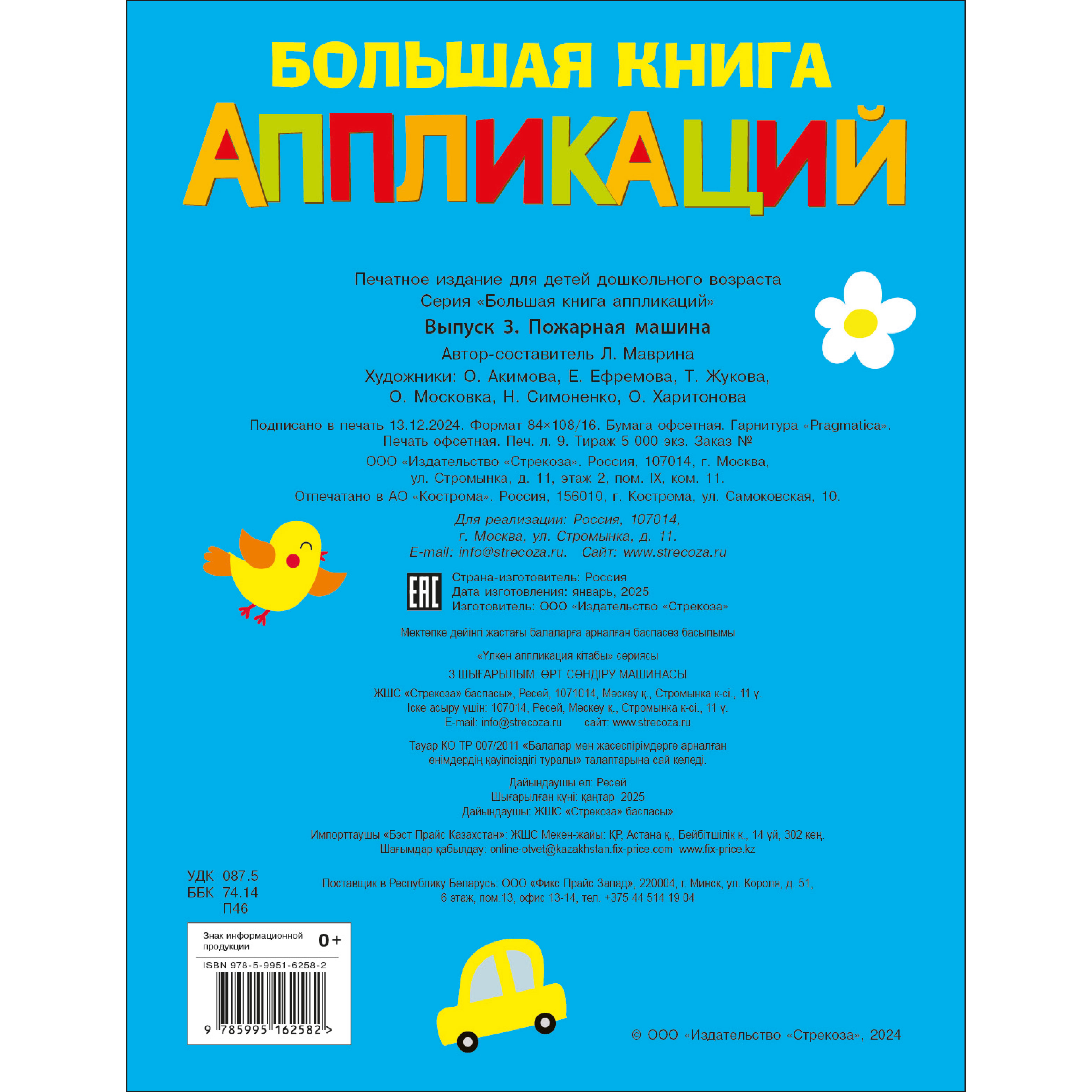 Цена на Книга СТРЕКОЗА Большая книга аппликаций Пожарная машина выпуск 3 - 449 ₽.