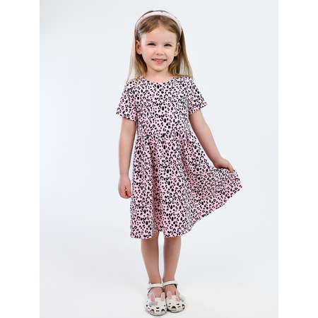 Платье для девочки с короткими рукавами. Изготовлено из ткани кулирка 100% хлопок. Платье отрезного по талии, юбка с рисунком. Платье детское подходит для детского садика, для прогулок и для дома.