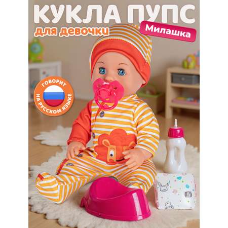 Озвученный пупс может плакать и смеяться, капризничать и лепетать, как настоящий карапуз. Также он умеет пить водичку из бутылочки и ходить на горшок. Говорящая кукла воспроизводит 8 мелодий В. Шаинского, а также произносит фразы на русском языке, среди них "мама", "папа", "я хочу спать" и другие, издаёт различные звуки младенца, а также рассказывает стишок и поёт песенки.