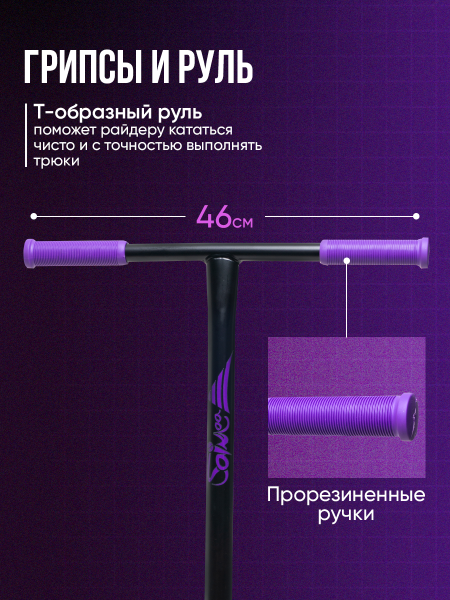Трюковый самокат с Т-образным рулем, резиновыми ручками поворачивается на 360 градусов. Сердечник колес из высокопрочного алюминия. Материал деки - алюминий, имеет специальное противоскользящее покрытие. Верхнее покрытие колес из мягкого полиуретана. Отличный подарок для себя и для близких. Хорошо упакован в качественную картонную коробку. Приходит в разобранном виде, всё что необходимо - присоединить руль к деке, с помощью зажима на 3 винта (ключ в комплекте). Всё остальное собрано и готово к эксплуатации. Никаких конструкторов и сложных сборок. Все самокаты проверены на качество и комплектацию. Катится легко. Ножной тормоз. Если Вы хотите купить трюковый самокат хорошего качества за привлекательную цену, обратите внимание на данную модель.Цены в интернет-магазине могут отличаться от розничных магазинов.