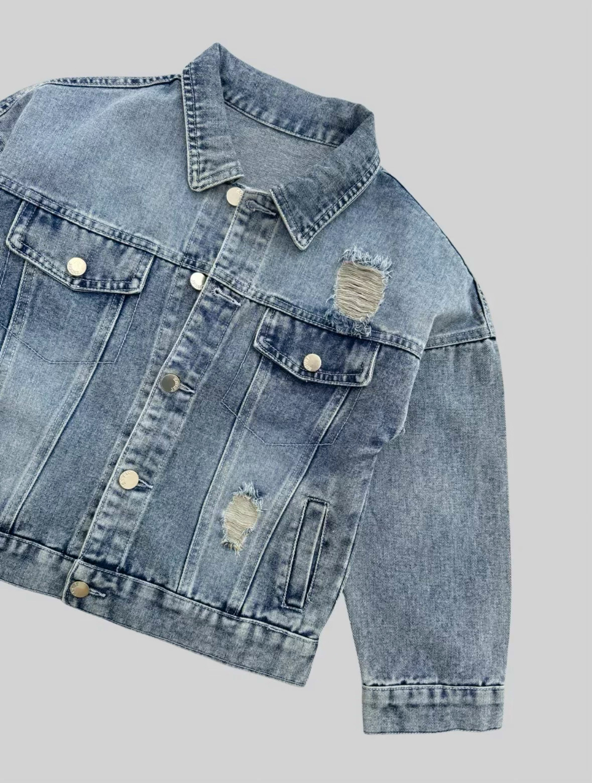 Джинсовая куртка для девочки-подростка — это стильный и универсальный элемент гардероба, который станет любимым аксессуаром в повседневной жизни. Изготовленная из качественного денима, куртка отличается прочностью и долговечностью, что делает её практичной покупкой. Классический крой с длинными рукавами и воротником обеспечивает комфорт и свободу движений. Два передних кармана с клапанами и пуговицами добавляют функциональности и завершают образ. Особенностью модели является декоративная потертость на левом кармане, которая придает изделию винтажный шарм и подчеркивает индивидуальность. Куртка идеально подходит для создания модных образов в сочетании с джинсами, футболками и кроссовками. Она станет незаменимой вещью в гардеробе каждой модницы.Сделайте покупку прямо сейчас и подарите дочери незабываемый восторг.