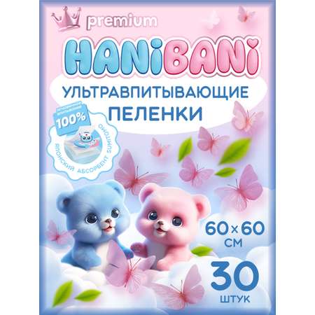 Пеленки впитывающие одноразовые детские HaniBani Premium, 60х60см, 30 штук