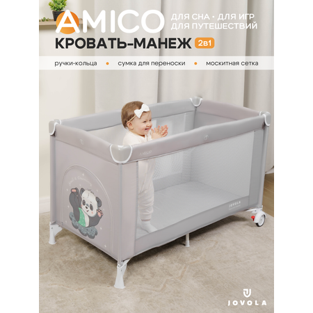 Манеж кровать детский JOVOLA AMICO, 1 уровень, светло-серый