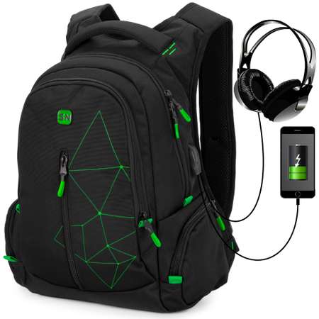 Рюкзак школьный для мальчика подростка 20 л, А4, мужской с анатомической спинкой, SkyName (СкайНейм), со слотом USB и входом для наушников