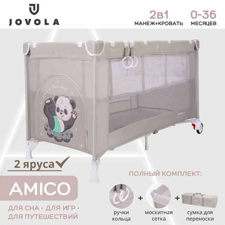 Цена на Манеж кровать JOVOLA Amico 2 уровня светло-серый серебряный - 5687 ₽.