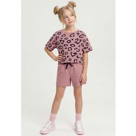 Комплект летний для девочки состоит из футболки и шорт. Пояс шорт на резинке и шнурке.