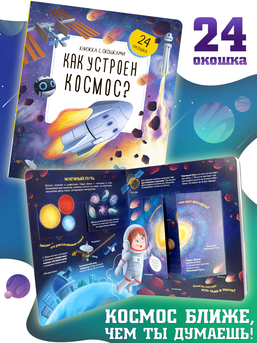 Книжка с окошками Как устроен космос? Malamalama Энциклопедия для детей