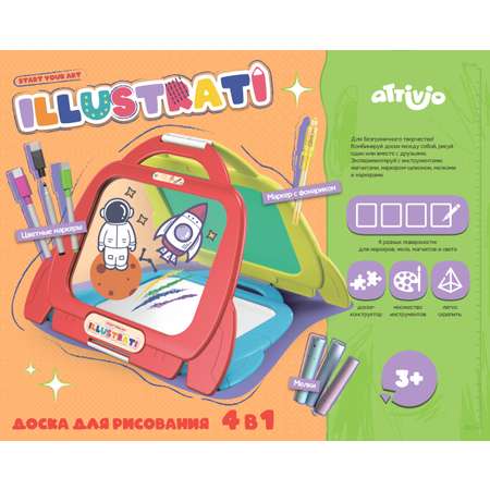 Настоящий простор для творчества! Можно рисовать одному или вместе с друзьями — ведь в наборе сразу три доски. Их легко соединять между собой с помощью зажимов и каждый раз создавать новую творческую зону.