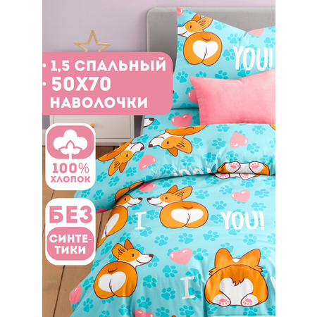 Комплект постельного белья Ночь Нежна Корги полутораспальный 3 предм.