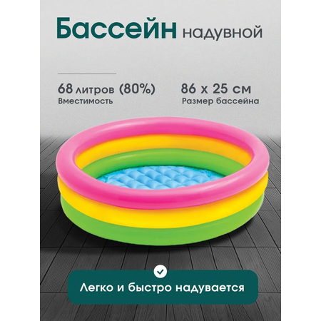 Бассейн надувной 86x25 см. Трехцветный с надувным дном INTEX (в коробке) Арт. 58924NP
