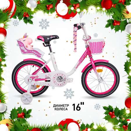 Комплектация - велосипед, игрушка Единорожек, кресло лоя куклы, катафоты, багажник, защитная накладка на руль, защита цепи, звонок, зеркальце, украшение на руль, инструкция