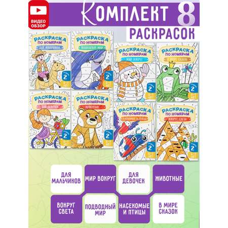 Комплект Раскраски по номерам Харвест для детей 8 шт