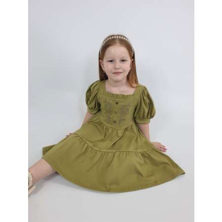 Летнее платье для девочки выполнено из легкого хлопкового полотна (100% хлопок). Платье с короткими рукавами, полуприлегающего силуэта. Оригинальный принт обязательно понравится юным модницам. Такое платье идеально подойдёт для прогулки в тёплый день, а также для садика, похода в гости. Приятный трендовый цвет можно легко сочетать с любыми образами как на каждый день, так и при особых случаях.