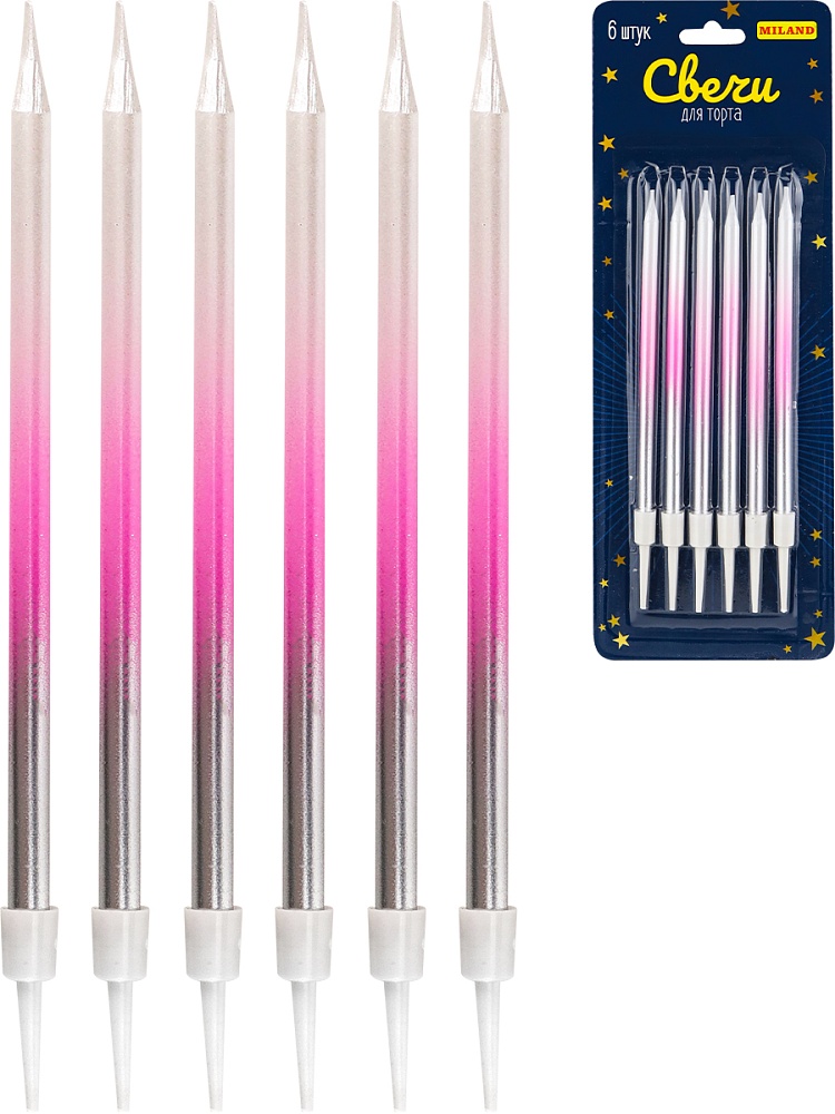 Свечи для торта на подставках Miland "Волшебство", 6шт, розово-серебристые .