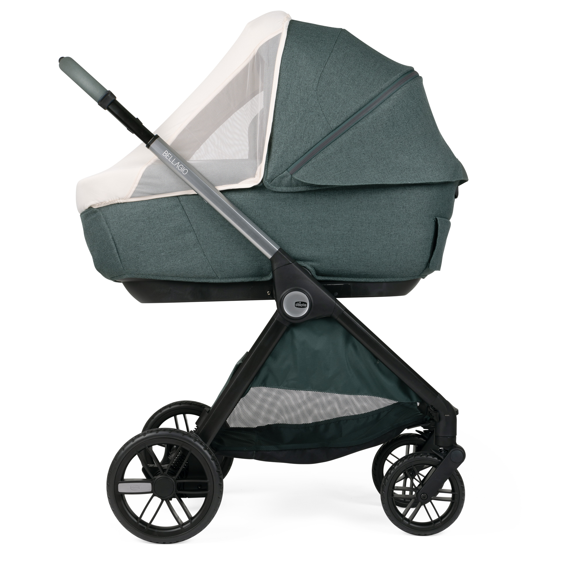 Вся коляска украшена высококачественными деталями: металлическим логотипом Chicco, светоотражающими молниями и вставками из премиальных тканей.