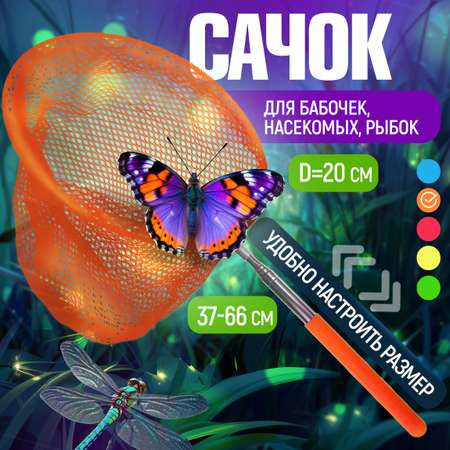 Сачок для бабочек телескопический 37-66 см 1TOY детский для насекомых птиц рыбок 2в1 большой и маленький