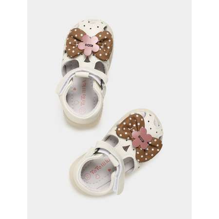 Длина стелек: р.19-11,5 см, р.20-12,5 см, р.21-13 см, р.22-13,5 см, р.23-14,5 см, р.24-15 см.Детские сандалии для девочки от бренда Тотошка-практичный и удобный вариант для повседневного использования. Пинетки детские выполнены из мягкой искусственной кожи, которая создается с использованием современных технологий, прочная и долговечная. Детские сандалии имеют натуральную кожаную подкладку, что является ключевым преимуществом модели. Анатомическая натуральная кожаная стелька с супинатором способствует правильному положению стопы ребенка. Жесткий задник с мягким валиком не натирает нежные детские ножки. Детские кожаные босоножки застегиваются на ремешки с липучками, которые надежно фиксируют ножку и позволят легко подстроить высоту подъема. Гибкая подошва из термопластичной резины обладает отличной амортизацией и имеет легкий вес. Закрытые кожаные сандалии этой модели легкие и не сковывают движений, не давят и не натирают. Сандали детские для девочки в сад, на прогулку, на пляж универсальны. Нарядная, праздничная детская обувь прекрасно подойдет для выпускного, утренника, и просто для повседневной носки как сменка в садик и прогулок. А чтобы не пропустить наши новинки, рекомендуем добавить Тотошка в любимые бренды.