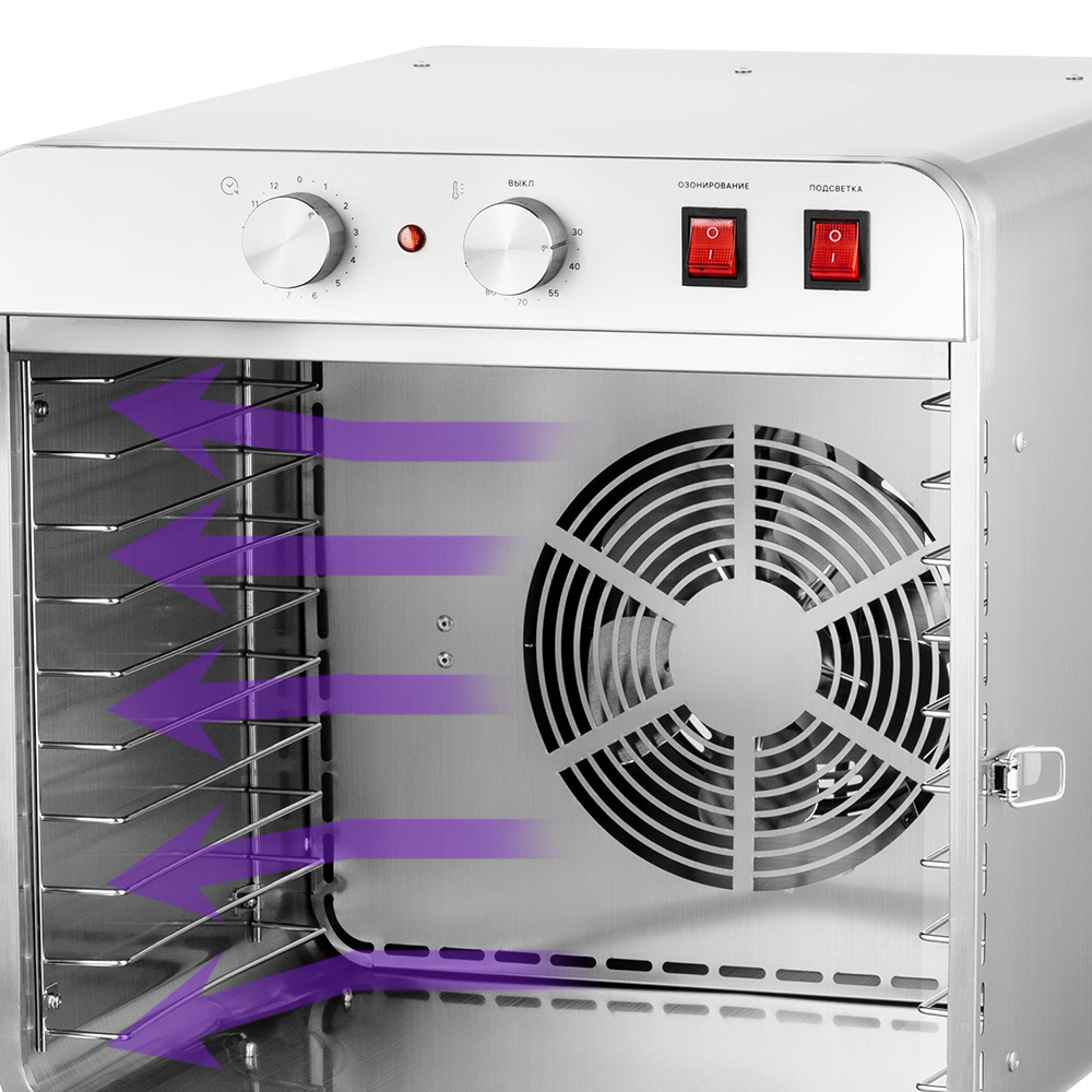 - Сушилка очень удобная вещь на кухне. Хорошо и красиво выглядит, работает без нареканий. Можно сушить большой объем продуктов, входит много. В комплекте есть силиконовые поддоны и поддоны сетки для сушки трав. По окончанию времени выключается сама. Есть подсветка и озонирование. Делала пастилу из яблок, высушила за 14 часов. Также сушила фрукты слайсами, тоже получилось хорошо, дети в восторге. Будем пробовать сушить другие и продукты. Сушилкой довольны, давно мечтали о такой