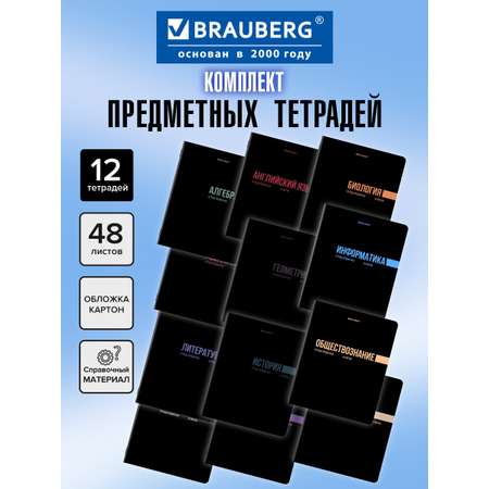 "Погрузитесь в мир знаний с комплектом предметных тетрадей BRAUBERG ""КЛАССИКА BLACK""! Этот набор из 12 предметных тетрадей станет незаменимым помощником для школьников 5-11 классов. Каждая тетрадь формата А5 содержит 48 листов высококачественной офсетной бумаги, что обеспечивает комфортное написание и идеальную читаемость.