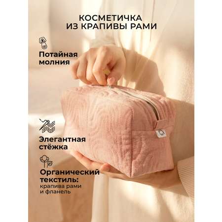 - Внешняя поверхность косметички выполнена из натуральной крапивы рами: антибактериальной, гипоаллергенной ткани.