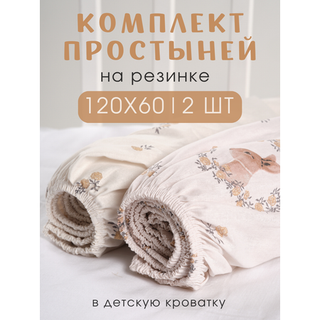 В комплект входит 2 простыни на резинке размером 120х60х15.