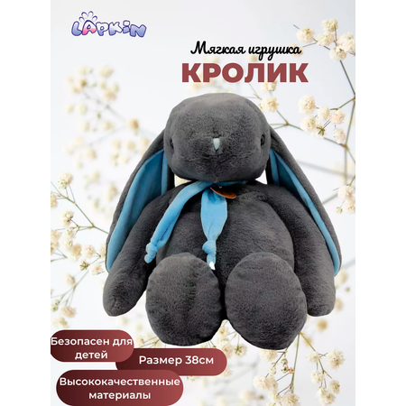 Кролик 38 см темно-серый с голубым шарфом